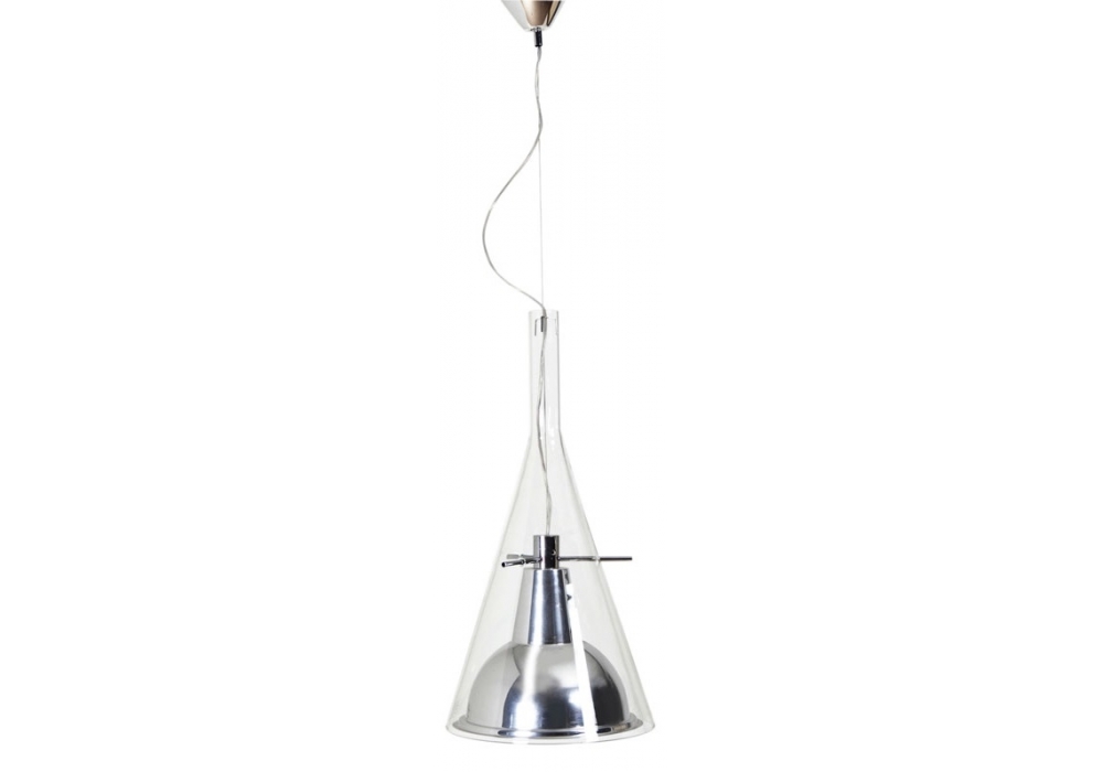 Flute XXL diseñada por Franco Raggi para Fontana Arte es una lámpara de suspensión con luz directa regulable. Difusor de vidrio borosilicato transparente. Reflector de aluminio cromado brillo. Soporte reflector de metal cromado. Cable de suspensión de acero. Cable de alimentación transparente. Rosetón en material termoplástico cromado.