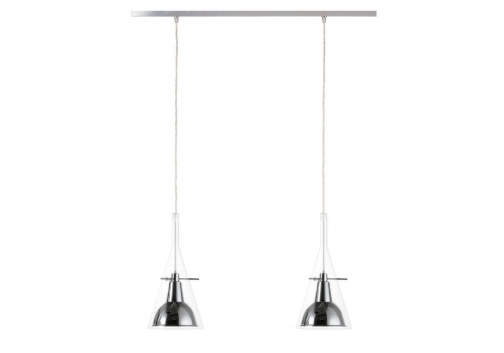 Flute 2 diseñada por Franco Raggi para Fontana Arte es una lámpara de suspensión, con estructura portante en aluminio anodizado pulido. Los difusores son de cristal envolvente, con reflectores de aluminio pulido.