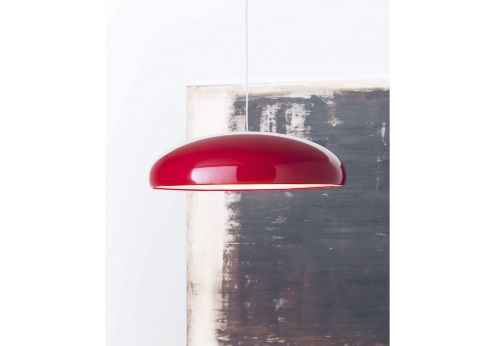 Pangen diseñada y producida por Fontana Arte es una lámpara de suspensión regulable de luz directa con difusor superior en metal pintado e inferior en policarbonato opal. Cable de alimentación transparente. Rosetón en policarbonato cromado. Disponible en diferentes acabados.