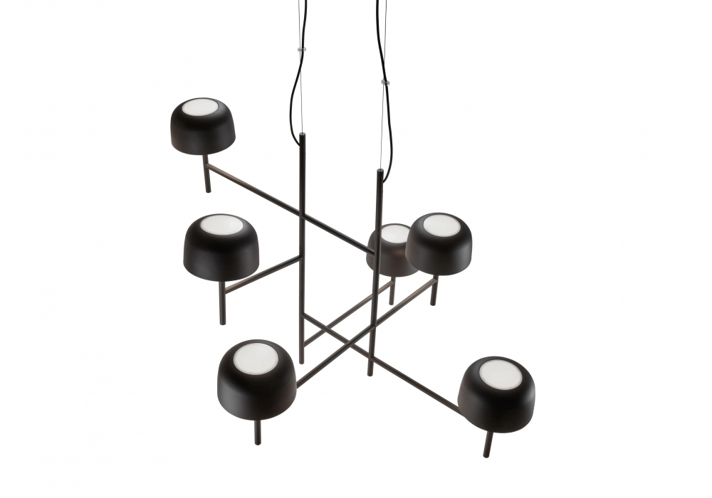 Bol diseñada por Estudi Manel Molina para Bover es una lámpara de suspensión con un marco estructurado por varillas tubulares de aluminio entrecruzadas en color negro mate. Las pantallas tienen forma redondeada y adoptan un difusor de policarbonato que apantalla las fuentes de luz LED regulables con sistema Triac. Bol está disponible en diferentes modelos.