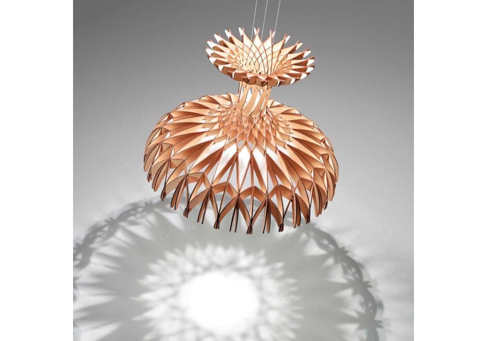 Dome diseñada por Benedetta Tagliabue para Bover es una lámpara de suspensión con florón circular en metal pintado blanco mate. La pantalla tiene forma circular enteramente estructurada en madera de haya natural tejida. El difusor es cilíndrico en aluminio y adopta una fuente de luz tipo LED con sistema de regulable Triac. La cúpula está disponible en diferentes modelos.