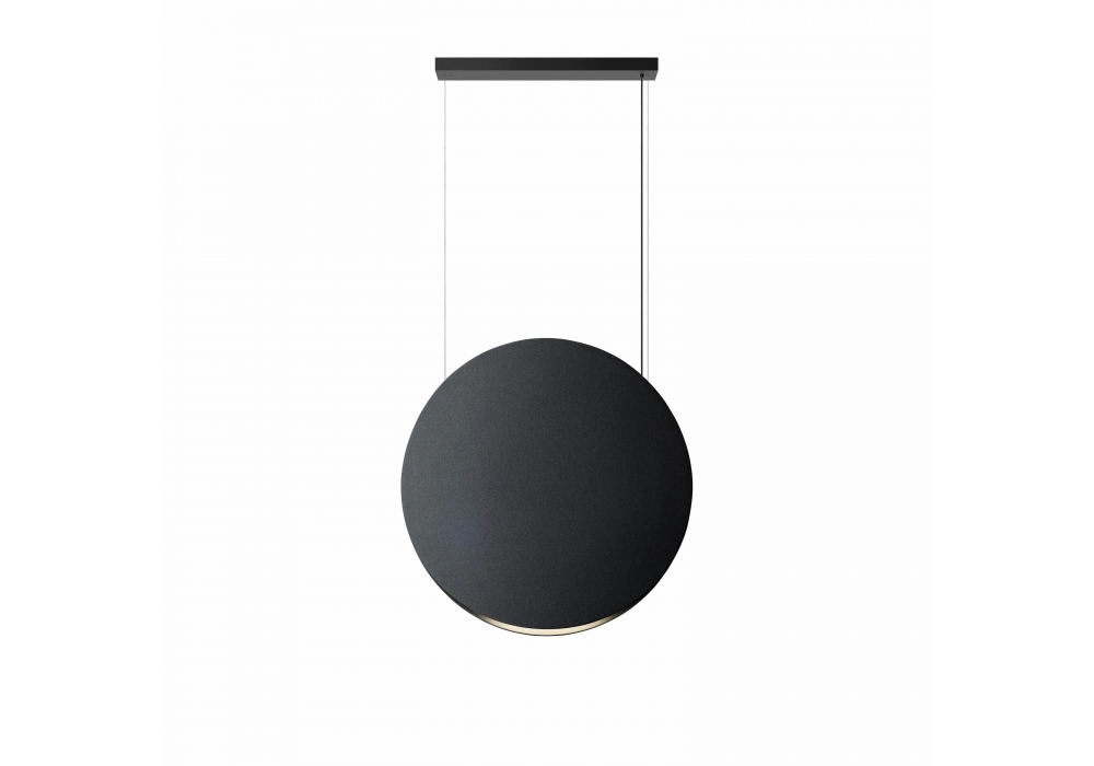 Noren Down Circular diseñada por Estudi Manel Molina para Bover es una lámpara de suspensión con soporte y estructura portante en aluminio y MDF. El difusor tiene forma circular en MDF revestido con espuma fonoabsorbente Basotect y tejido Crevin y adopta una fuente de luz LED con sistema de atenuación Dali. Noren Down Circular está disponible en diferentes acabados y modelos.