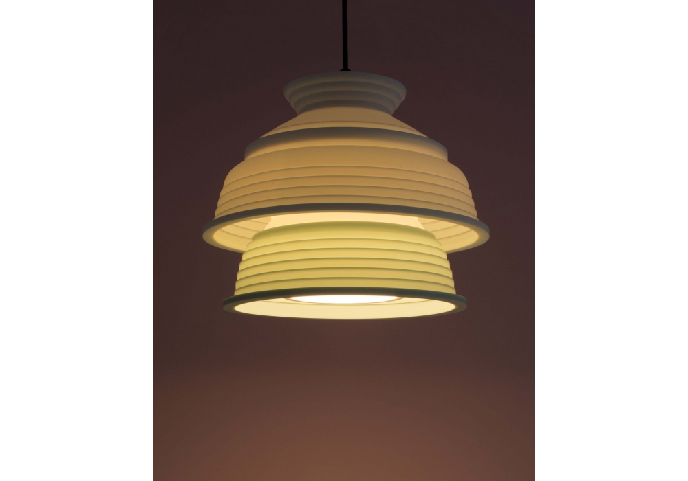 CL4 producida por Sowden es una lámpara de suspensión LED fabricada en ABS y silicona. Incluye florón de policarbonato negro y cable ABS texturizado.