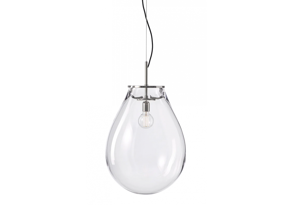 Tim diseñada por Olgoj Chorchoj para Bomma es una lámpara de suspensión con difusor de cristal soplado y herraje de metal. Disponible en diferentes acabados y dimensiones.