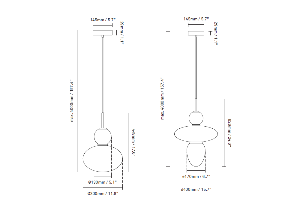 | Difusor | Rizzatto 32_ Ø 30 x H 44.8 cm; Rizzatto 43_ Ø 40 x H 62.6 cm. |