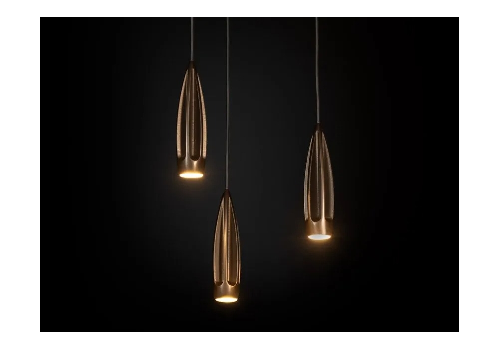 Compass 3 Quasar diseñada por Jos Muller para Quasar es una lámpara de suspensión con estructura portante circular. Los difusores son de forma cónica en aluminio pulido o pintado con ranuras verticales. Las fuentes de luz utilizadas son LED regulables con cable de alimentación transparente. Compass 3 está disponible en diferentes acabados.
