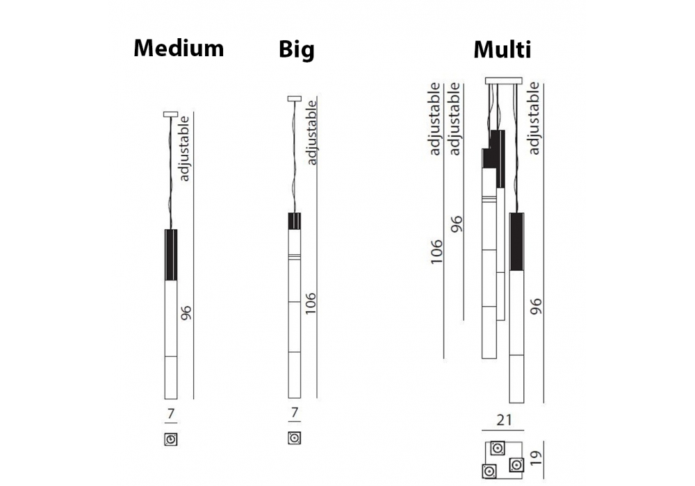 | Dimensiones | 7 x 7 x H 96 cm; 7 x 7 x H 106 cm; 19 x 21 x H 138 cm. |