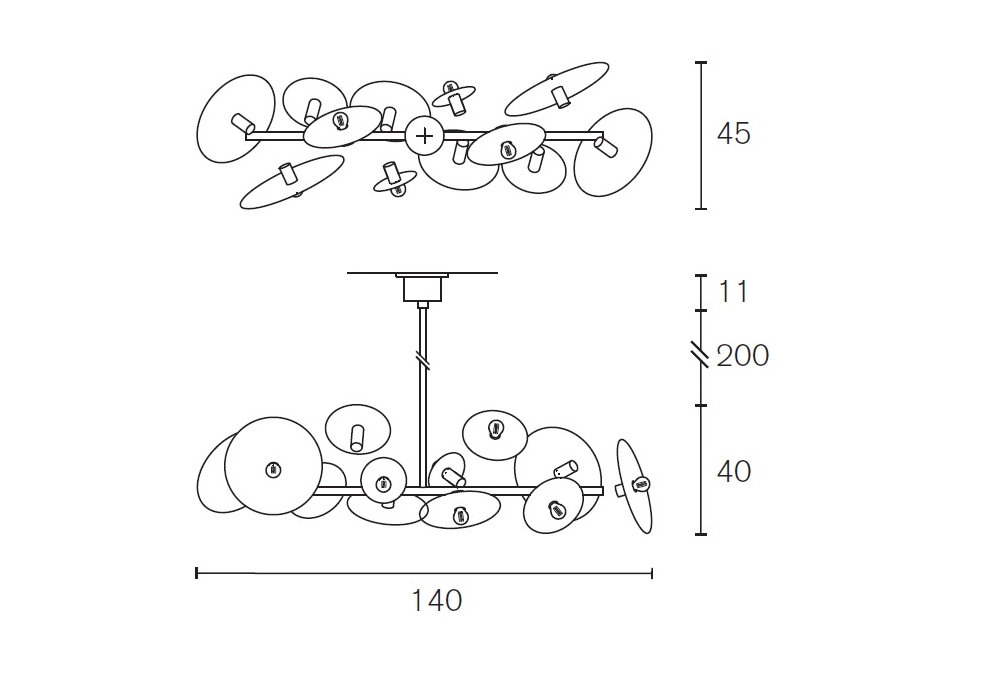 Solis Long diseñada por William Brand para Brand Van Egmond es una lámpara de suspensión realizada con estructura de metal y reflectores. Disponible en diferentes acabados.