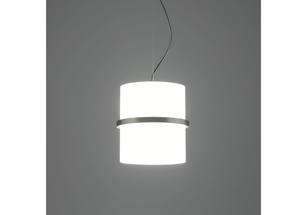 Boa diseñada por Carlo Guglielmi para Firmamento Milano es una lámpara de suspensión con luz directa e indirecta realizada en aluminio satinado y niquelado. Difusor de vidrio soplado opalino esmerilado.