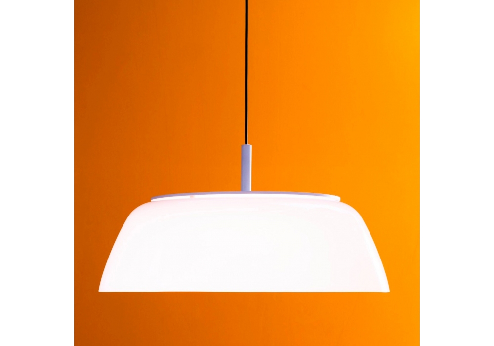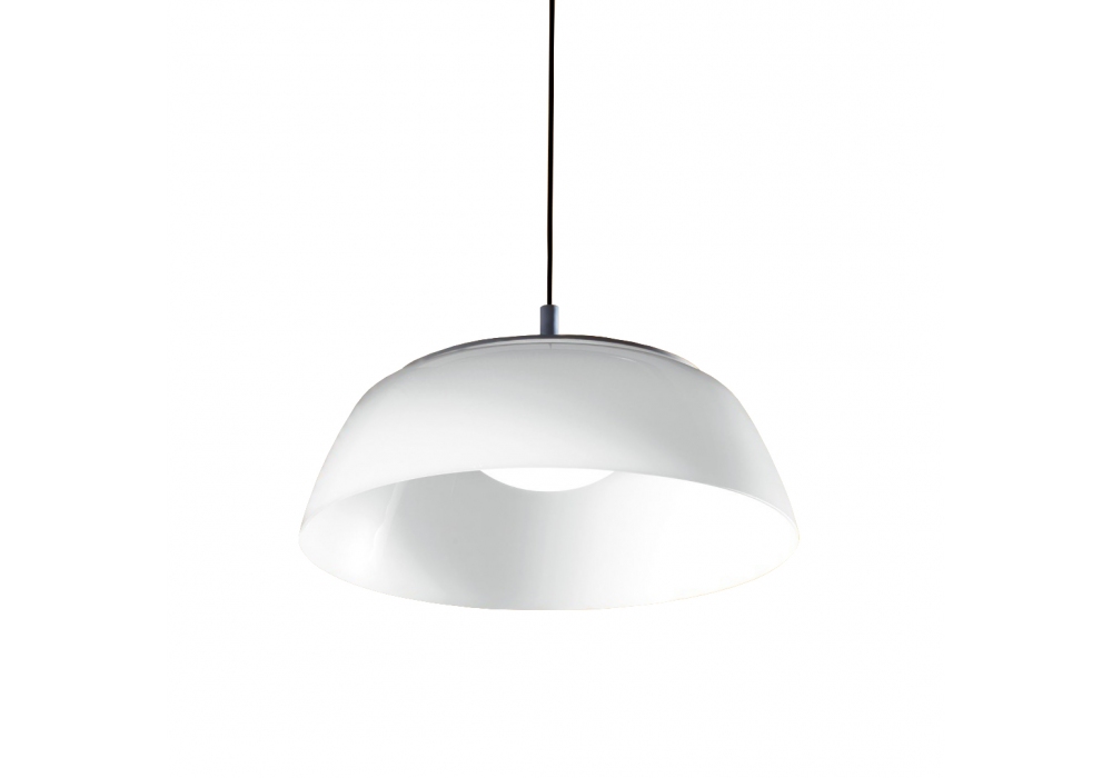 Onda diseñada por Luc Ramael para Martinelli Luce es una lámpara de suspensión circular estructurada en aluminio pintado y metacrilato blanco opalino. El difusor está fabricado en metacrilato opal blanco y apantalla las fuentes de luz LED.