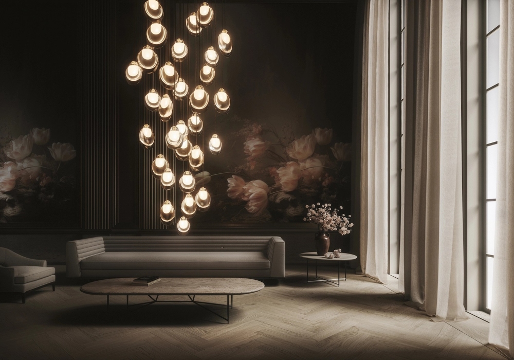 Petal diseñada por Sebastian Herkner para Rakumba es una lámpara de suspensión realizada en vidrio, disponible en diferentes acabados y tamaños.