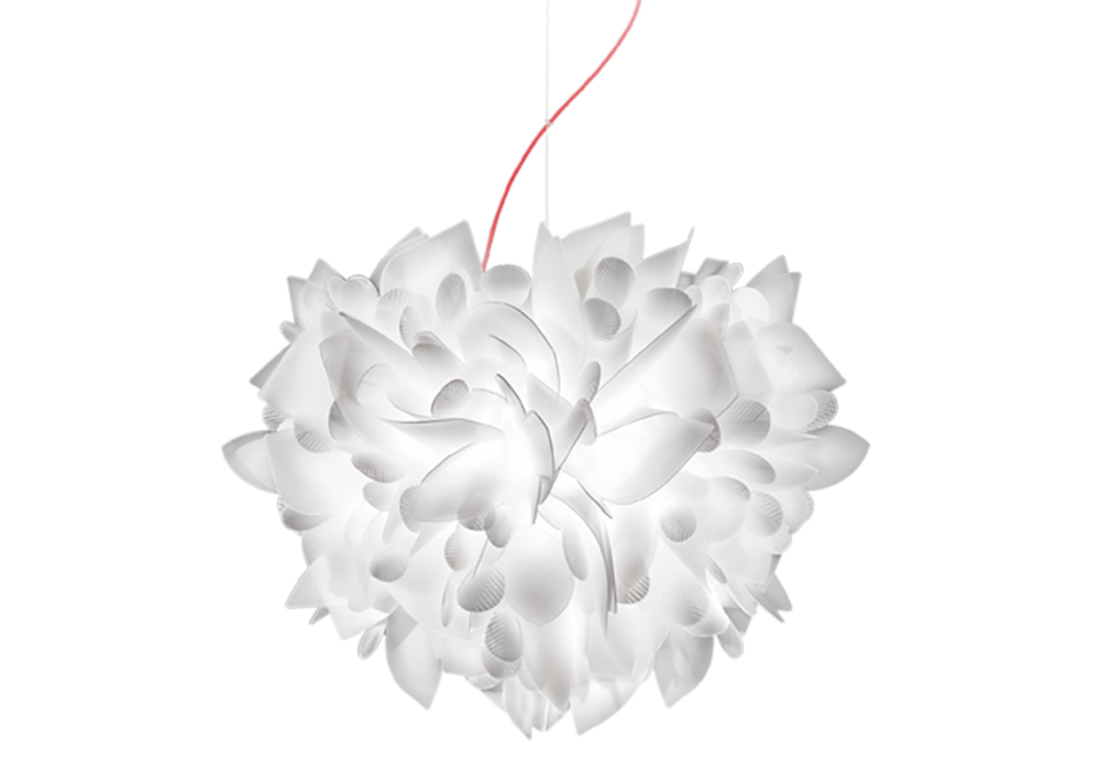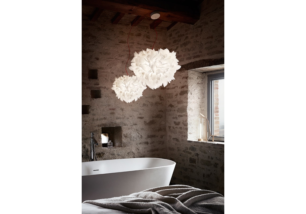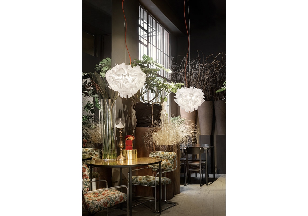 Veli Foliage diseñada por Adriano Rachele para Salmp es una lámpara de suspensión realizada íntegramente en Opalflex® blanco. La fuente de luz utilizada es del tipo LED de filamento regulable. Veli Foliage está disponible en dos tamaños y versiones diferentes.