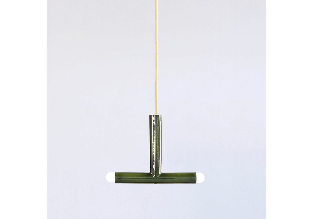 TRN B2 diseñada por Pani Jurek es una lámpara de suspensión realizada con estructura en metal y difusor de cerámica esmaltada a mano.