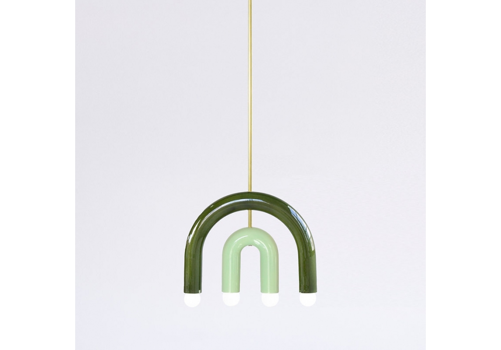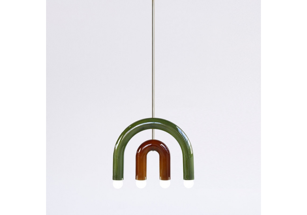 TRN C1 diseñada por Pani Jurek es una lámpara de suspensión realizada con estructura en metal y difusor de cerámica esmaltada a mano.