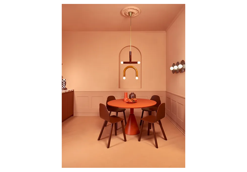 TRN C2 diseñada por Pani Jurek es una lámpara de suspensión realizada con estructura en metal y difusor de cerámica esmaltada a mano.