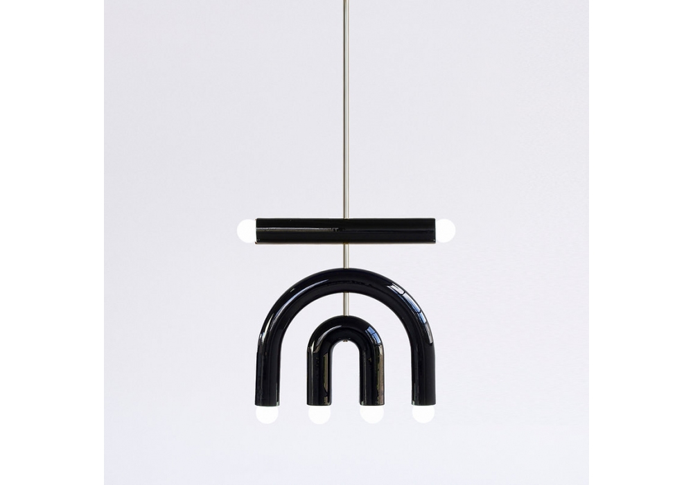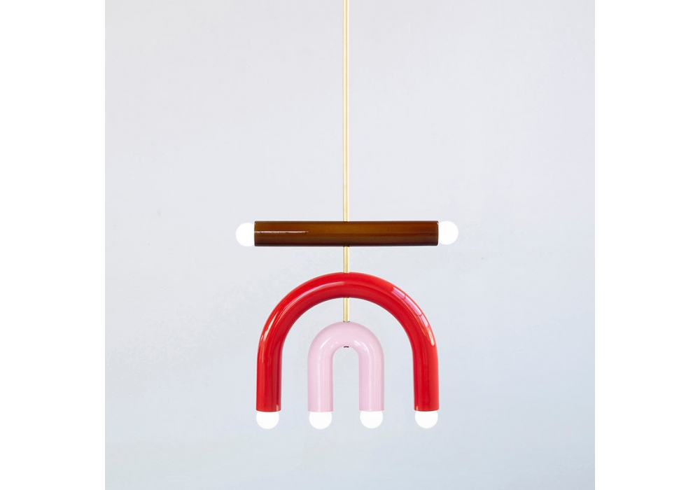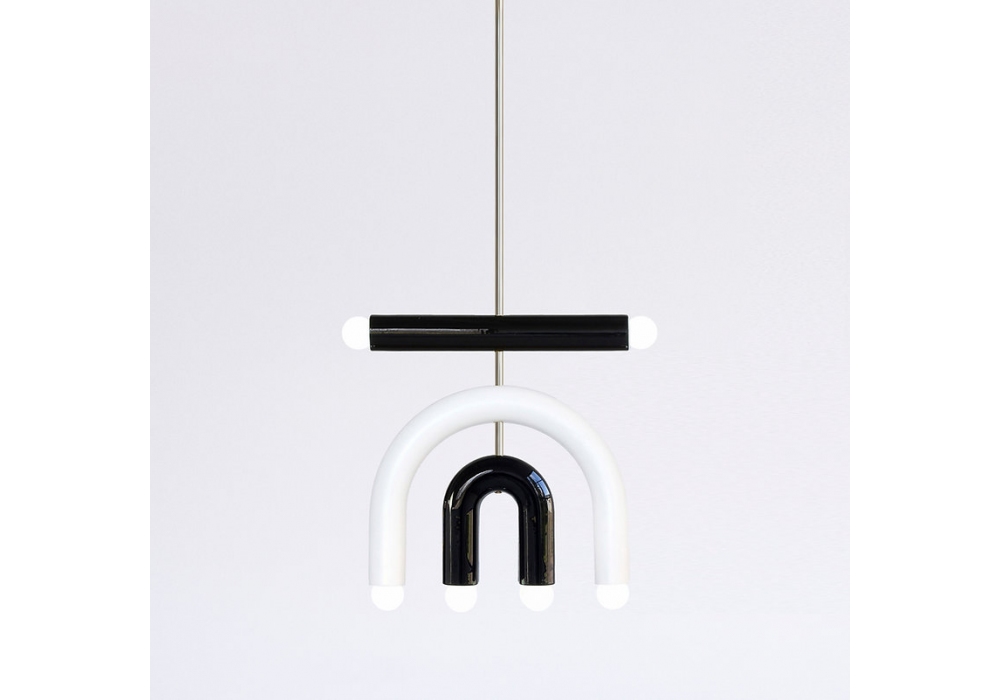 TRN D1 diseñada por Pani Jurek es una lámpara de suspensión realizada con estructura en metal y difusor de cerámica esmaltada a mano.