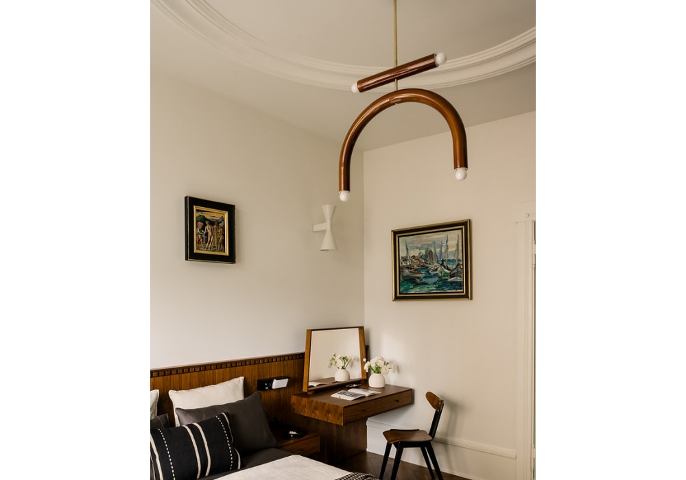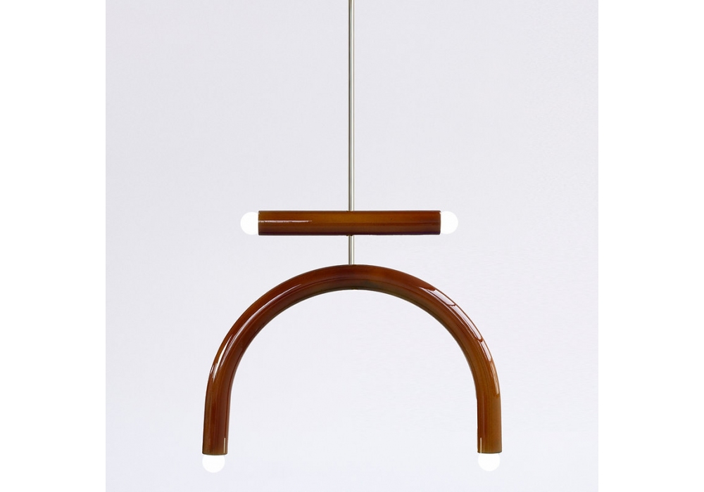 TRN E1 diseñada por Pani Jurek es una lámpara de suspensión realizada con estructura en metal y difusor de cerámica esmaltada a mano.