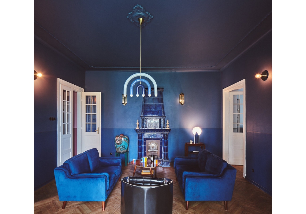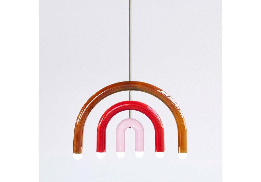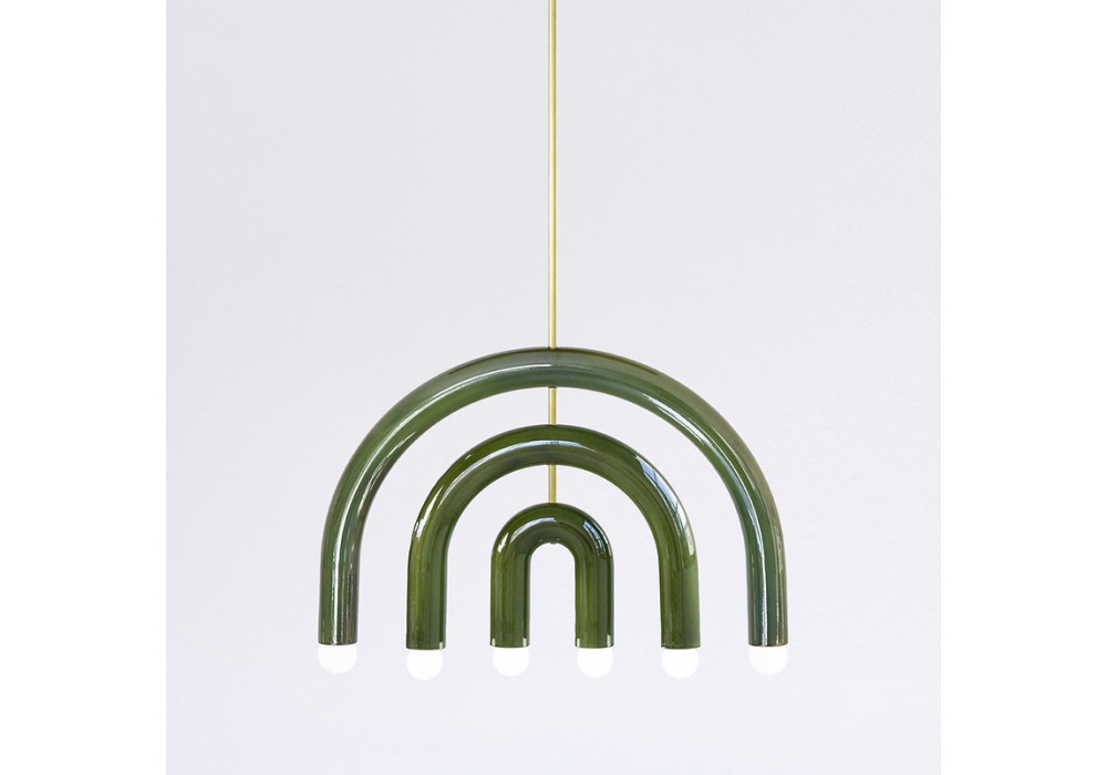 TRN F1 diseñada por Pani Jurek es una lámpara de suspensión realizada con estructura en metal y difusor de cerámica esmaltada a mano.