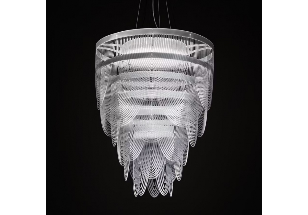 Ceremony diseñada por Bruno Rainaldi para Slamp es una lámpara de suspensión completamente estructurada en Lentiflex®. Las fuentes de luz adoptadas son del tipo LED de filamento regulable. La ceremonia está disponible en diferentes tamaños.
