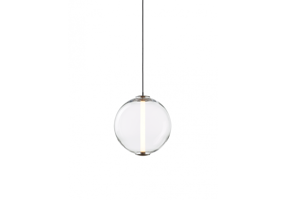 Buoy Sphere diseñada por Václav Mlynář para Bomma es una lámpara de suspensión con difusor de cristal soplado y detalle de aluminio negro o plateado. Disponible en diferentes acabados.