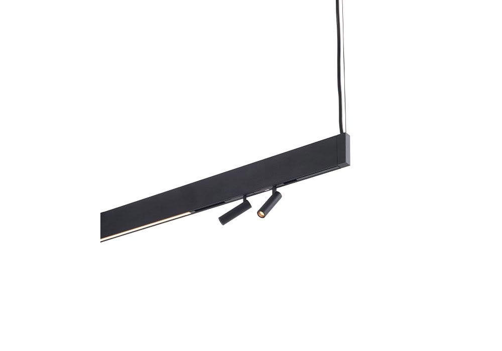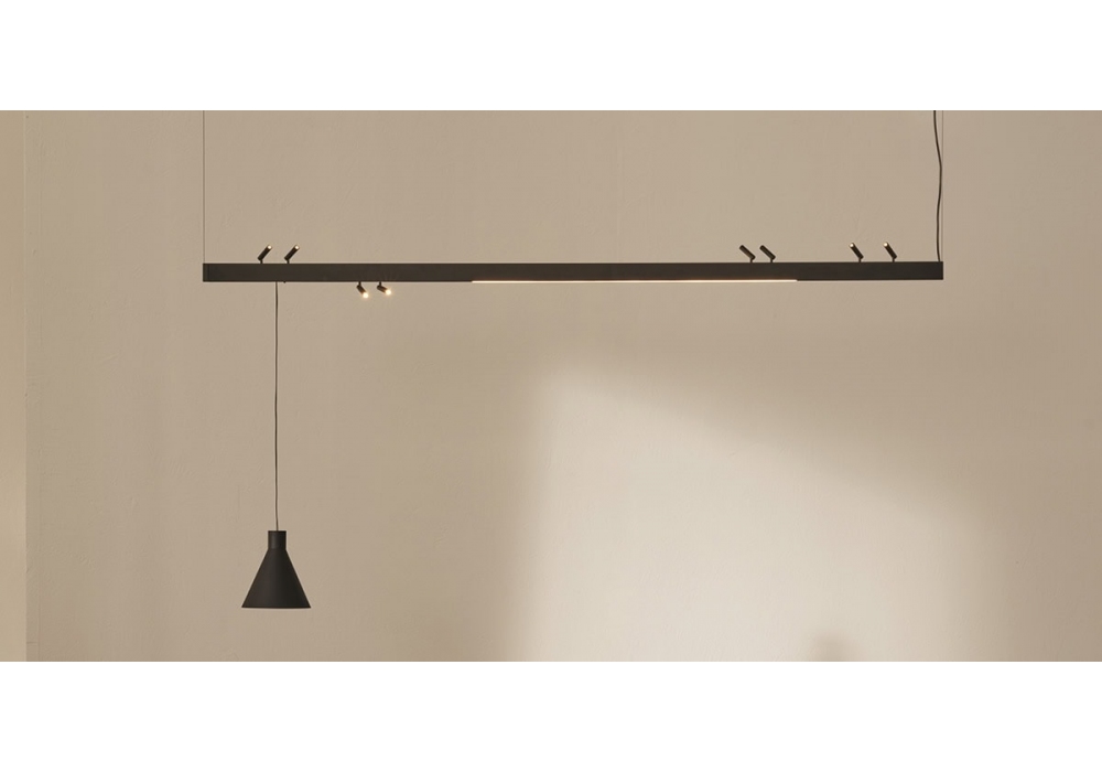 Linear Light System diseñado por C.R.S. De Padova es un sistema de iluminación de carril electrificado de doble emisión, configurable con lámparas lineales, focos orientables y suspensiones decorativas. Fabricado en aluminio pintado negro mate "soft touch", con florón coordinado y fuente de alimentación integrada (salida de 24 V). Control y regulación mediante PUSH o DALI. Las fuentes de luz de los perfiles superior e inferior se pueden gestionar de forma independiente, ofreciendo la máxima flexibilidad de diseño.