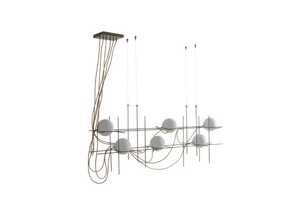 Iron - S diseñada por Riflessi es una lámpara colgante realizada con estructura de metal pintado y difusores de cristal blanco satinado.