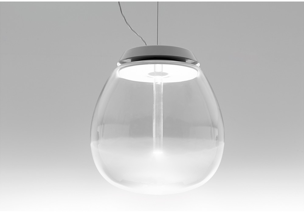Empatia diseñada por Carlotta de Bevilacqua y Paola di Arianello para Artemide es una lámpara de suspensión con base de anclaje circular de aluminio y cable de suspensión de acero. El cuerpo de iluminación está fabricado en vidrio soplado con difusor de metacrilato y apantalla una fuente de luz LED con sistema Push dimmer. Empatía está disponible en diferentes tamaños.