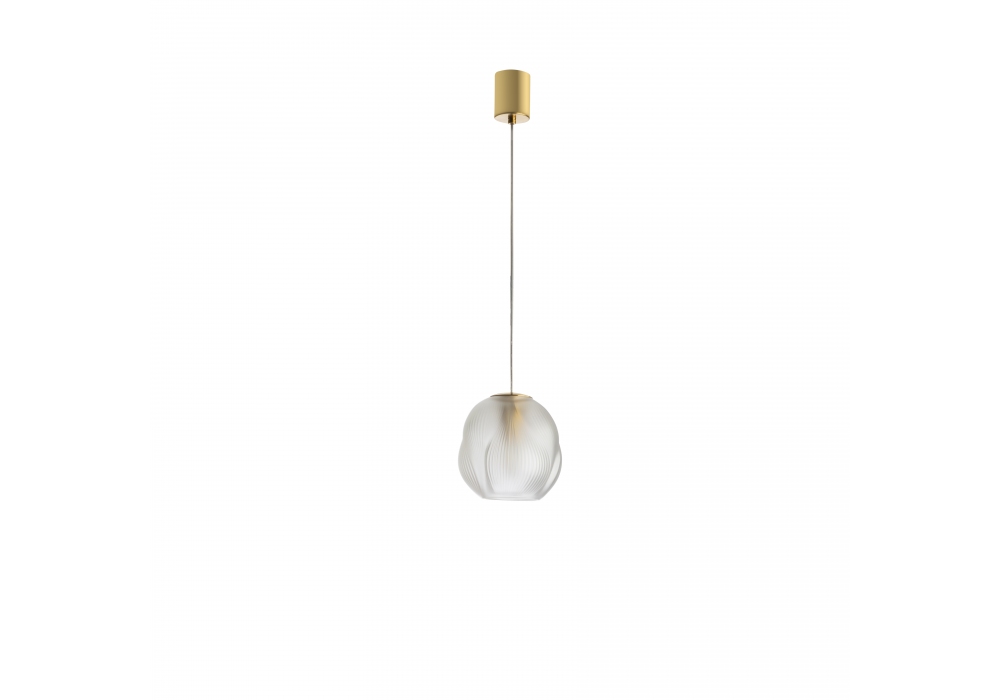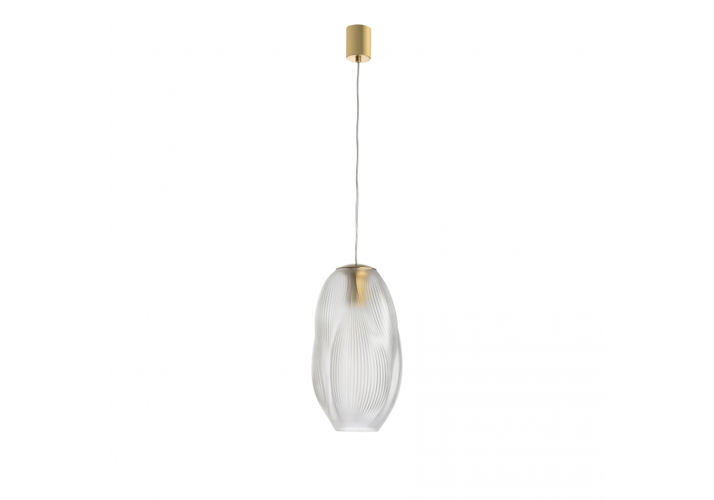 Alizé diseñada por René Lalique para Lalique es una lámpara de suspensión realizada con un difusor de cristal transparente y una estructura de metal satinado.