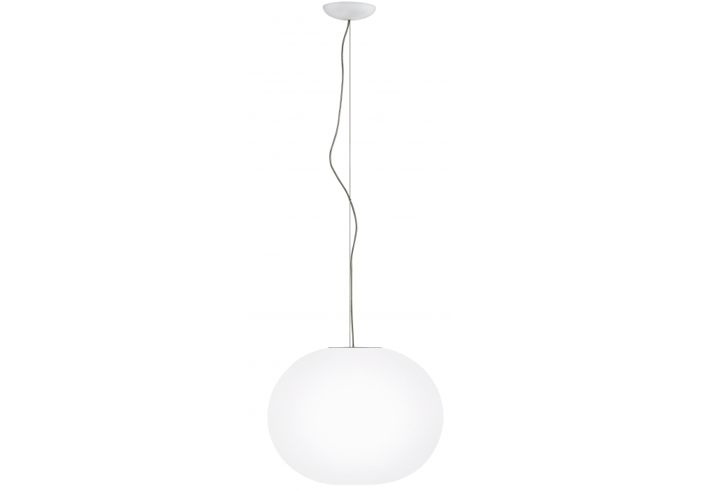 Glo-Ball S2 diseñada por Jasper Morrison para Flos es una lámpara de suspensión de luz difusa. Difusor de vidrio opalino soplado artesanalmente con acabado exterior ácido. Soporte del difusor de policarbonato transparente moldeado por inyección. Florón de poliamida con un 30 % de fibra de vidrio, moldeado por inyección, y fijación al techo de acero moldeado y galvanizado. Cable de suspensión de acero. Regulable a distancia (regulador de intensidad no incluido). Bombilla no incluida.