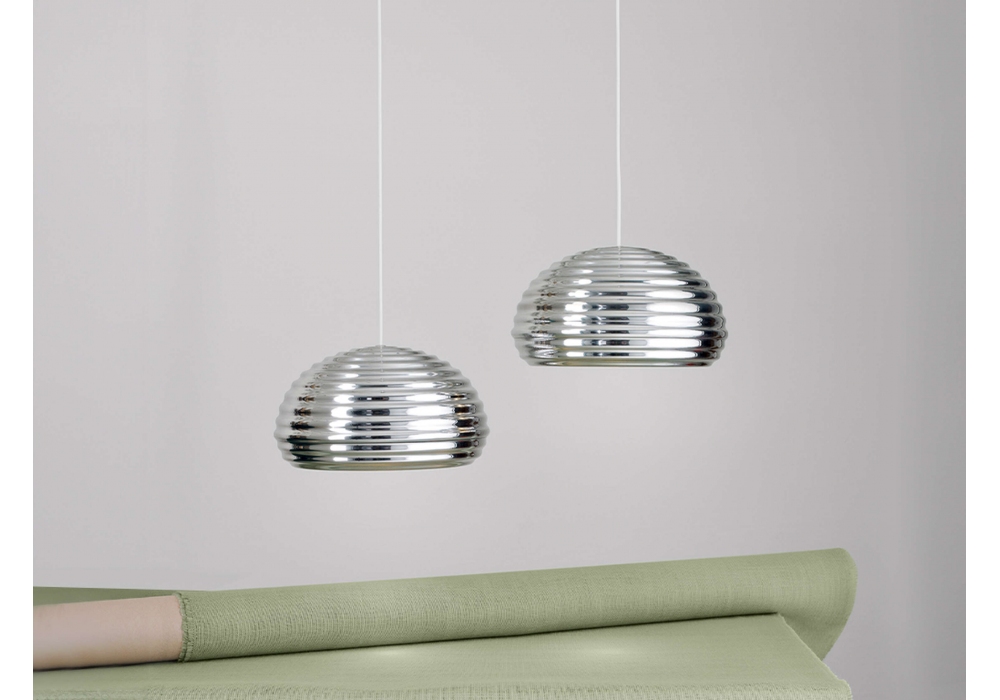 Splügen Bräu diseñada por Achille & Pier Giacomo Castiglioni para Flos es una lámpara de suspensión de luz directa. Reflector de aluminio torneado, pulido y protegido con barniz transparente. Plafón de acero y rosetón de ABS envasado al vacío en blanco brillante. Regulable a distancia (regulador de intensidad no incluido). Bombilla no incluida.