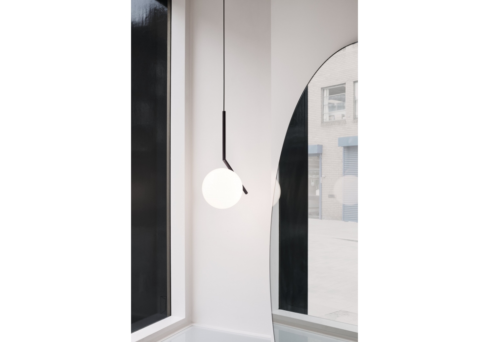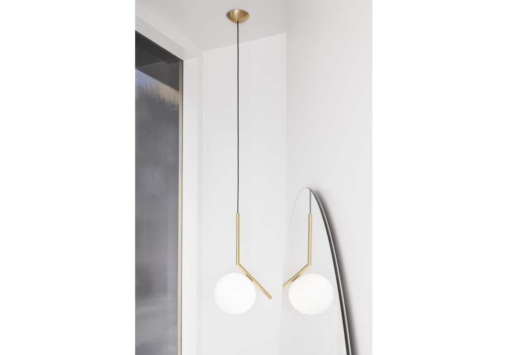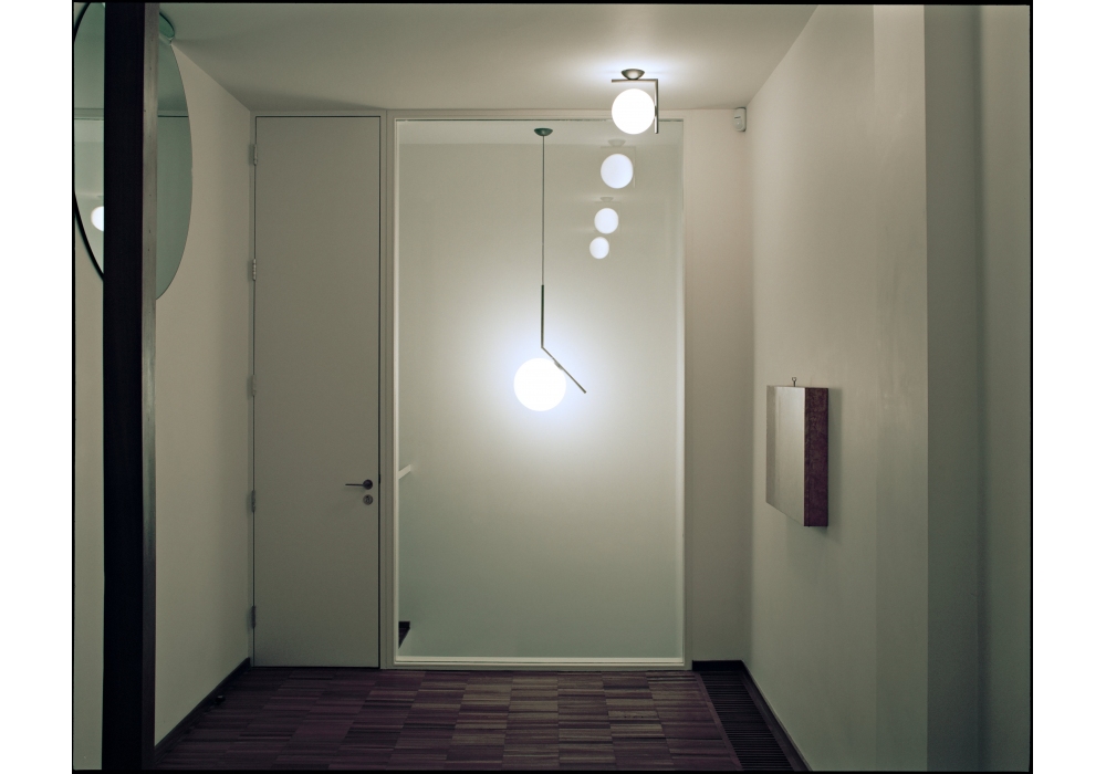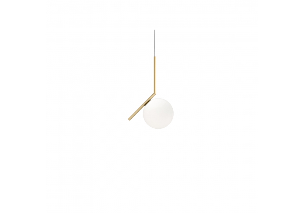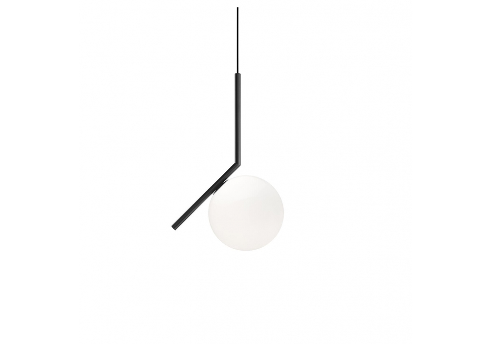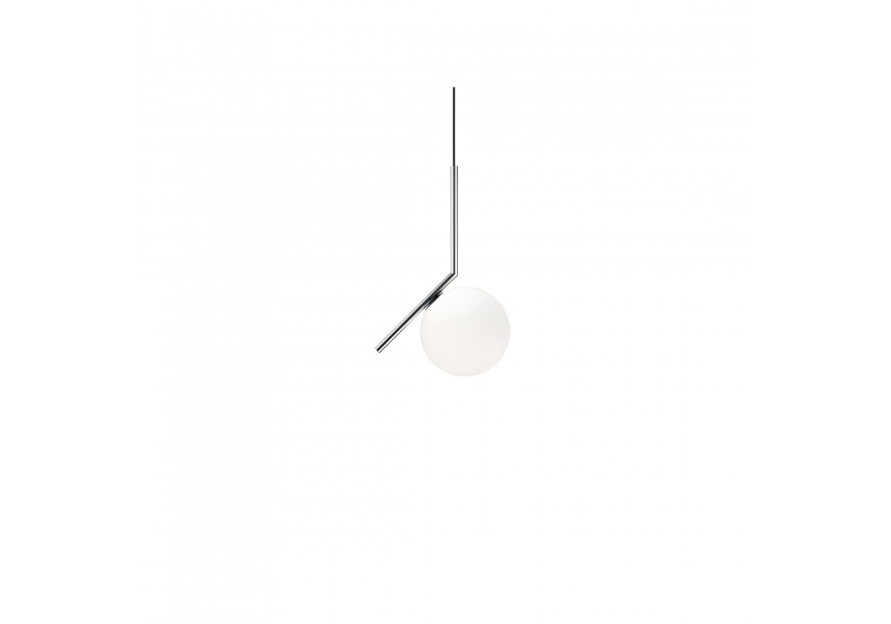 IC S1 diseñada por Michael Anastassiades para Flos es una lámpara de suspensión de luz difusa. Estructura de latón, acero negro o cromado. Difusor opalino de vidrio soplado. Regulable a distancia (regulador de intensidad no incluido). Bombilla no incluida.
