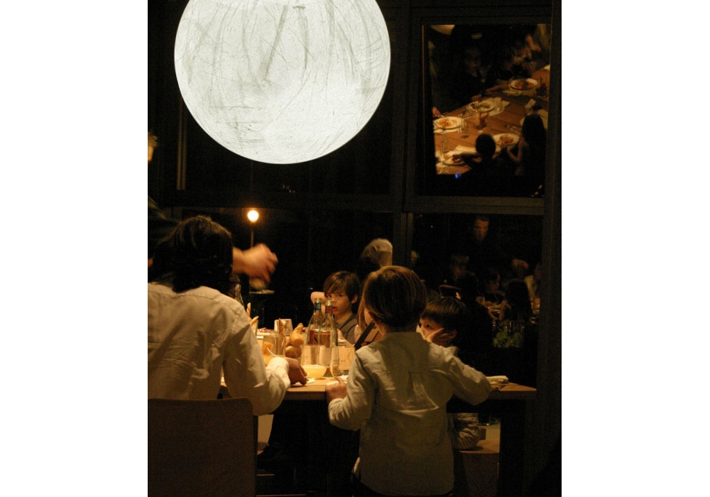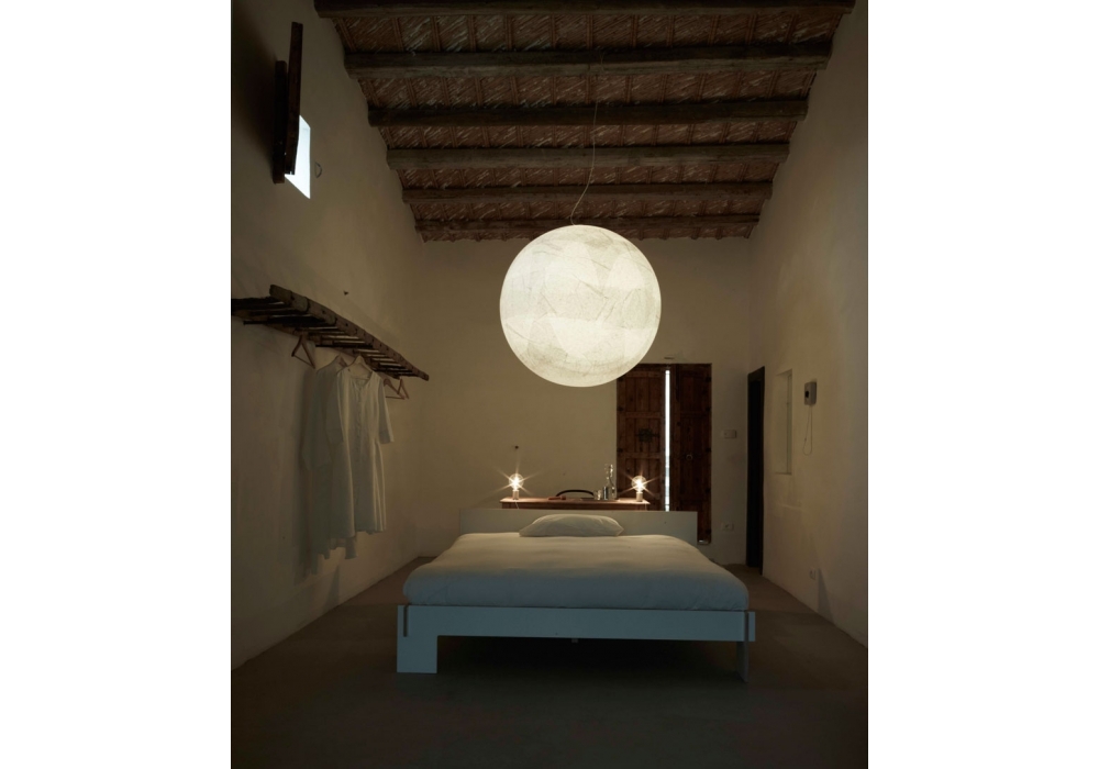 Moon diseñada y producida por Davide Groppi es una lámpara de suspensión esférica con pantalla de papel japonés y cable de suspensión de acero inoxidable. La fuente de luz adoptada es con luminaria de tipo LED E27. Luna está disponible en diferentes tamaños.