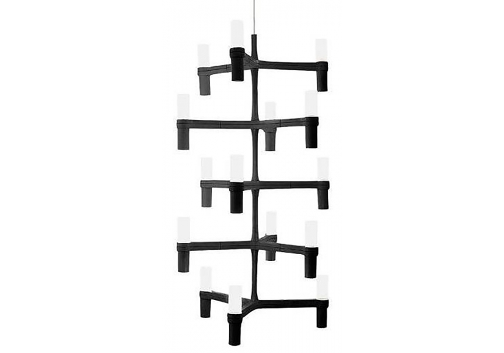 Crown Multi diseñada por Jehs + Laub para Nemo es una araña modular con estructura de aluminio fundido a presión y difusores de vidrio arenado. Como fuente de luz, se utiliza LED o halógeno. Crown Multi está disponible en diferentes acabados.