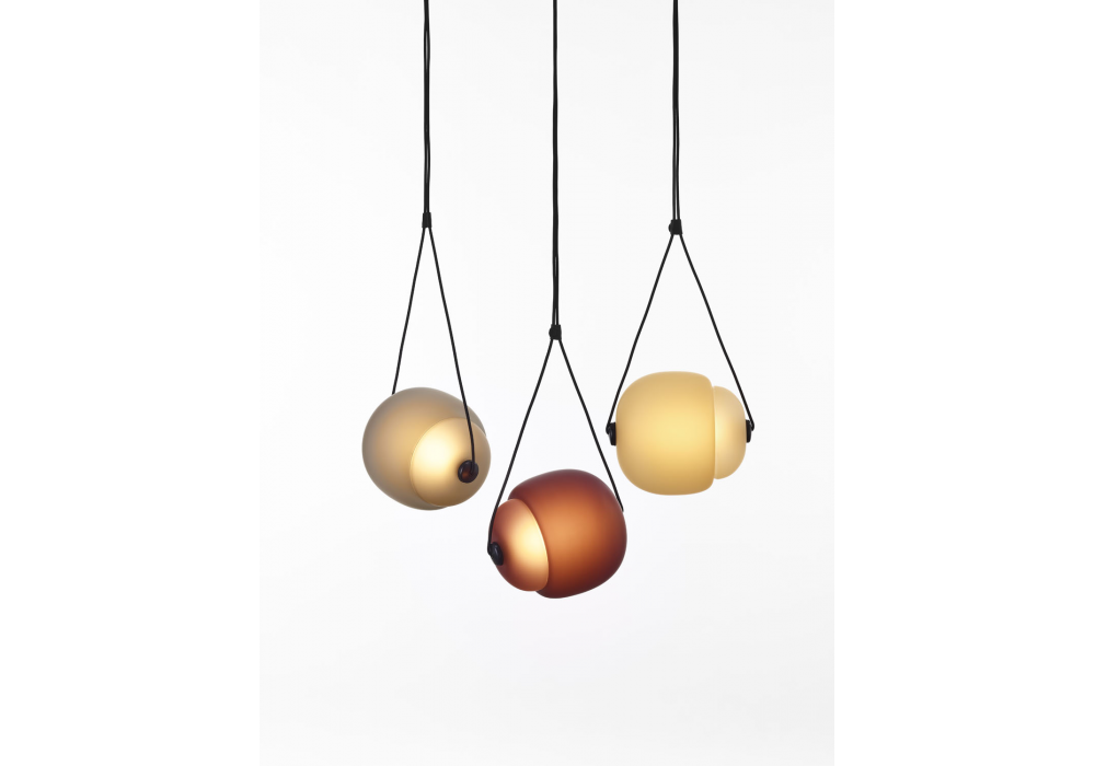 Capsula diseñada por Lucie Koldova para Brokis, es una lámpara de suspensión con una estructura formada por dos cápsulas ovaladas de vidrio soplado en varios acabados que se entrecruzan. El cuerpo de la lámpara está disponible en dos colores, negro anodizado o plata anodizado, e incorpora una fuente de luz LED regulable (incluida) en varias versiones. El cable de alimentación es de material textil del mismo color que el florón del techo.
