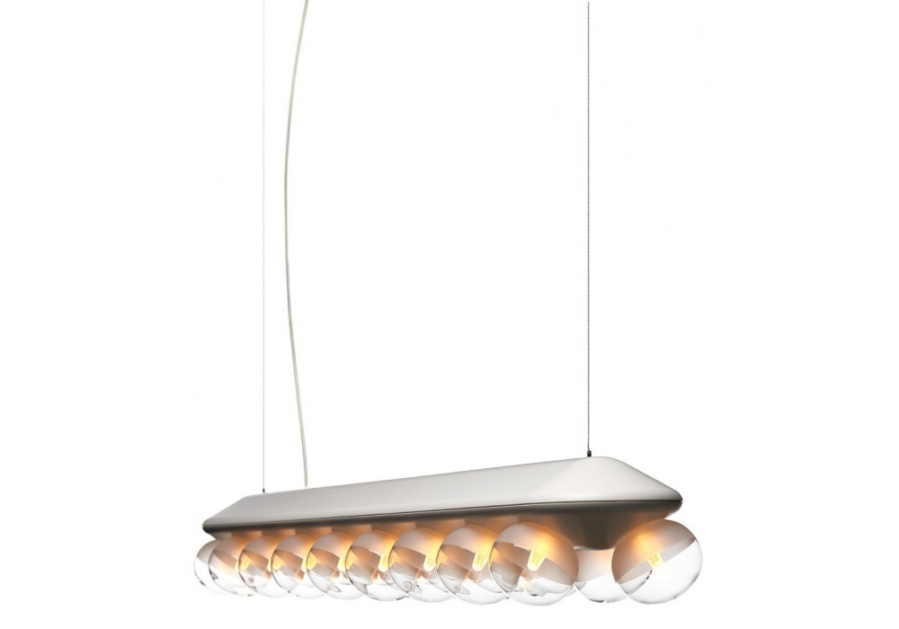 Prop Light Single diseñada por Bertjan Pot para Moooi es una lámpara de suspensión LED regulable con iluminación directa. Estructura en PMMA blanco. Cable transparente.
