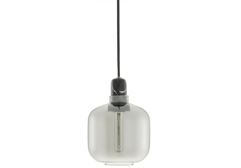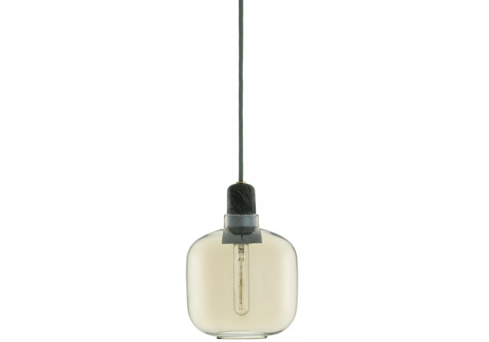 Amp diseñada por Simon Legald para Normann Copenhagen es una lámpara de suspensión, con cable de suspensión insertado en un cuerpo de soporte central en mármol, en verde, negro o blanco. La pantalla es cilíndrica en cristal, en acabados dorado, ahumado o blanco. La fuente de luz utilizada es LED (no incluida). Amp está disponible en versión UE (Europa) o US (U.S.A) versión.