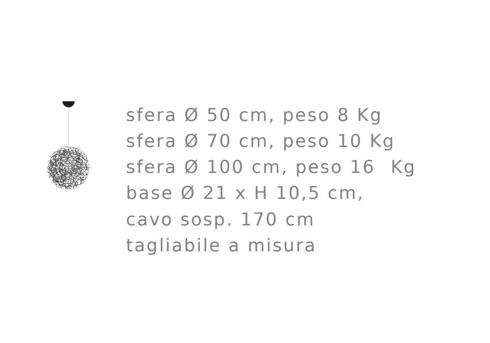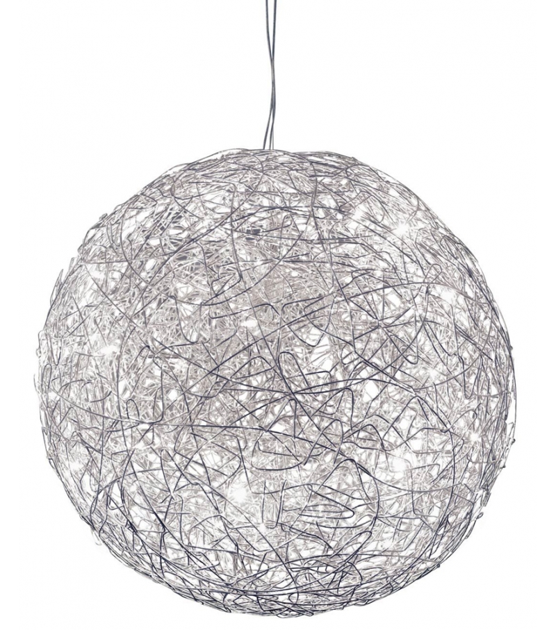 Fil de Fer diseñada por Enzo Catellani para Catellani & Smith es una lámpara de suspensión en forma de esfera, en alambre de aluminio natural con base de níquel o esfera anodizada oro mate con base anodizada oro. Disponible en diferentes tamaños.