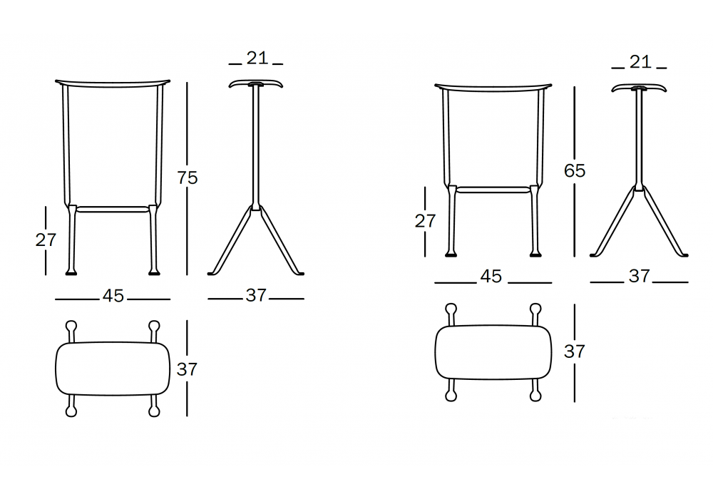 | Dimensiones | 45 x 37 x H 75 cm; 45 x 37 x H 65 cm. |