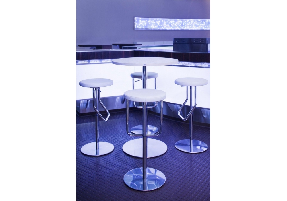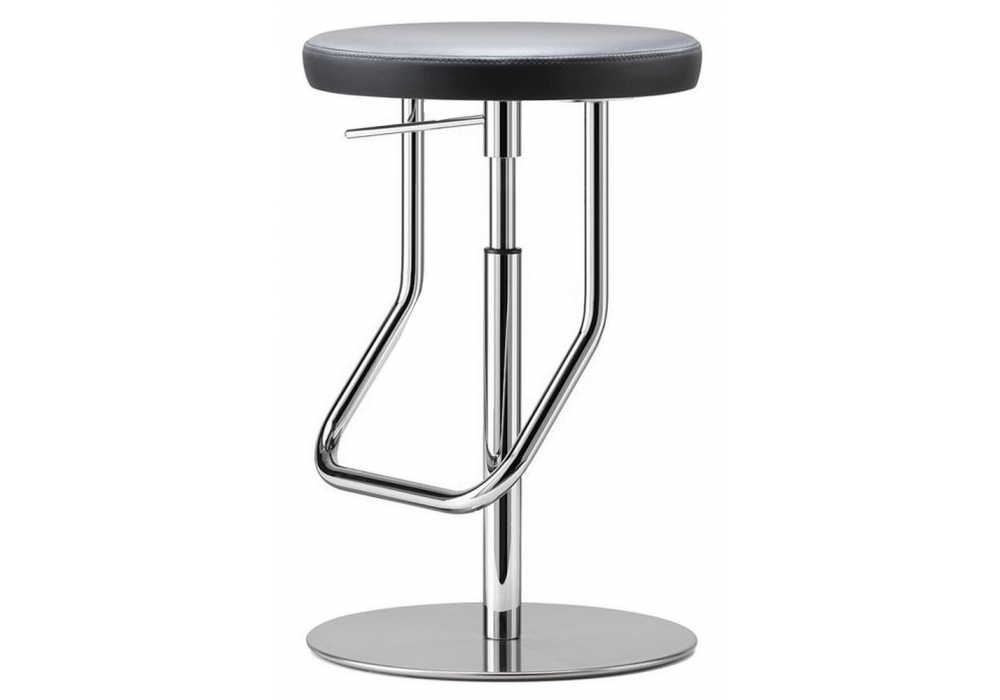 S 123 PH diseñado por James Irvine para Thonet es un taburete alto, base en acero inoxidable, resorte de gas cromado, reposapiés en acero tubular. Asiento giratorio de contrachapado perfilado, con completo acolchado revestido de tejido, piel o piel. Altura ajustable.