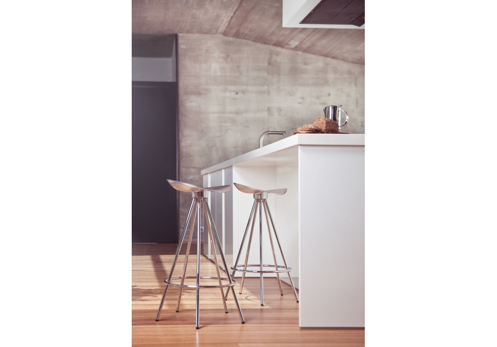 Jamaica diseñado por Pepe Cortés para BD Barcelona, es un taburete con estructura de acero cromado y asiento giratorio. Disponible en diferentes tamaños y materiales. También fabricado en la versión con ruedas.