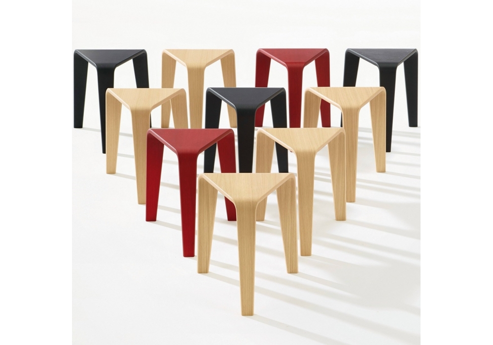 Ply diseñada por Lievore Altherr Molina para Arper es un taburete con estructura a tres patas realizada en madera multiestrato curvado, disponible en los acabados roble natural y negro. Se presenta con topes con inserción de fieltro para pavimentos de madera. Con sus superficies triangulares y su naturaleza modular, Ply es un sistema de mesitas y taburetes que traduce en una única forma las líneas fluidas de la madera. Proyectado como una señal continua que desde la primera superficie prosigue hasta la base, combina el calor del material con una forma dinámica y un perfil minimalista. Solo o en grupo, gracias a la divertida geometría de sus superficies, Ply es como el juego del Tangram, donde formas y colores se unen en composiciones imprevisibles.