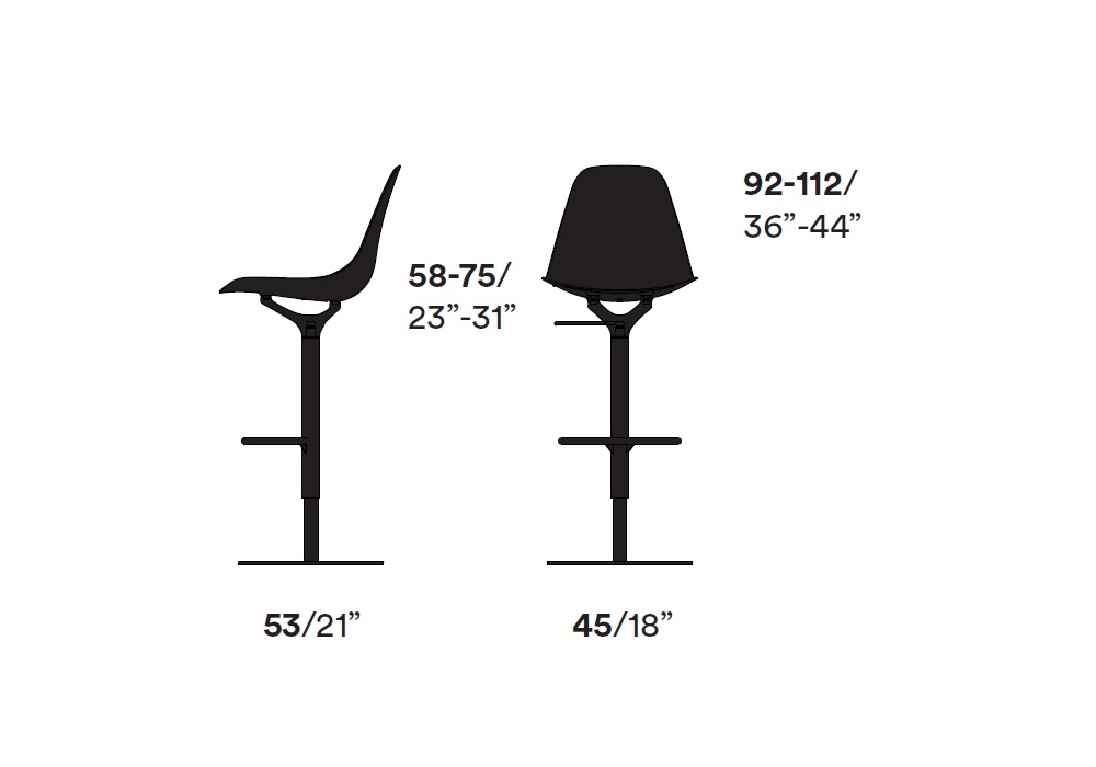 Taburete Mammamia diseñado por Marcello Ziliani para Opinion Ciatti es un taburete giratorio realizado con carcasa de aluminio inyectado y estructura, base y reposapiés de acero cromado. Disponible en aluminio espejo o en colores RAL.
