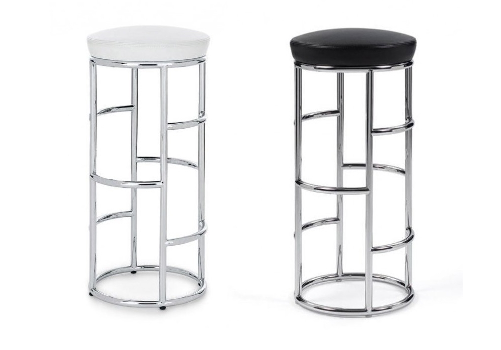 Satish diseñado por Eckart Muthesius para ClassiCon es un taburete con estructura de tubos de acero cromado. Acolchado: poliuretano con espuma sobre marco de madera de haya. Tapicería de tejido o cuero. Disponible en diferentes acabados.