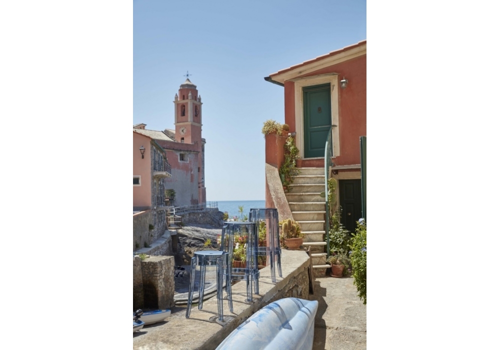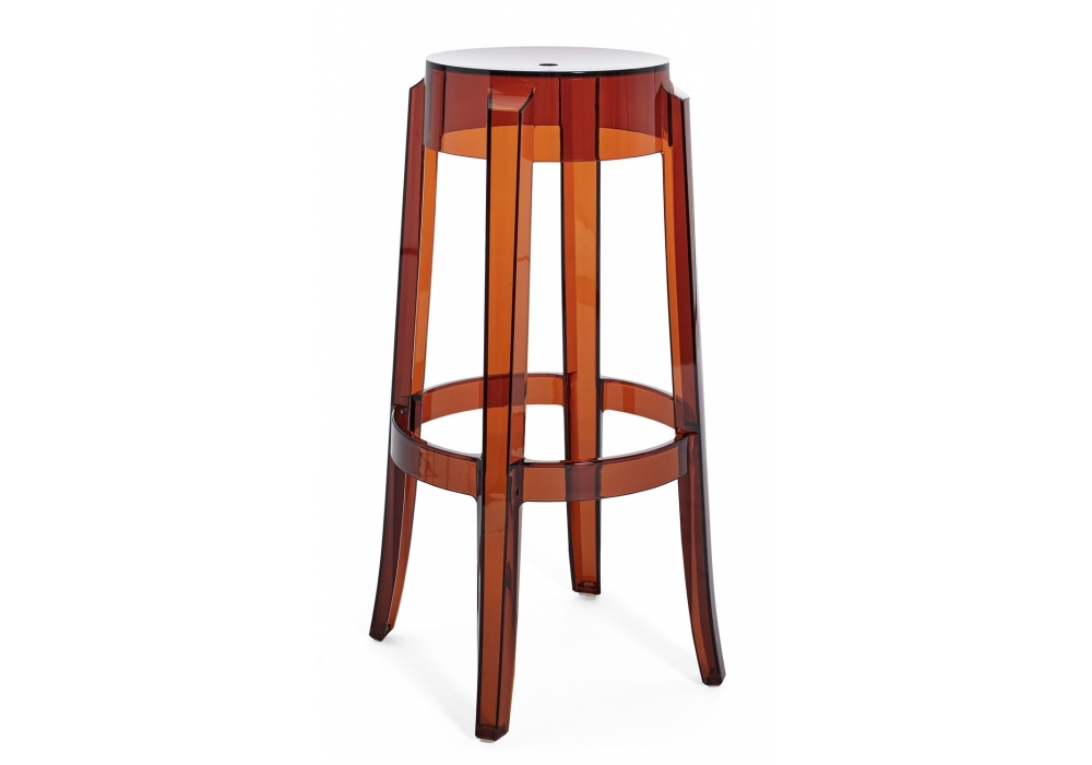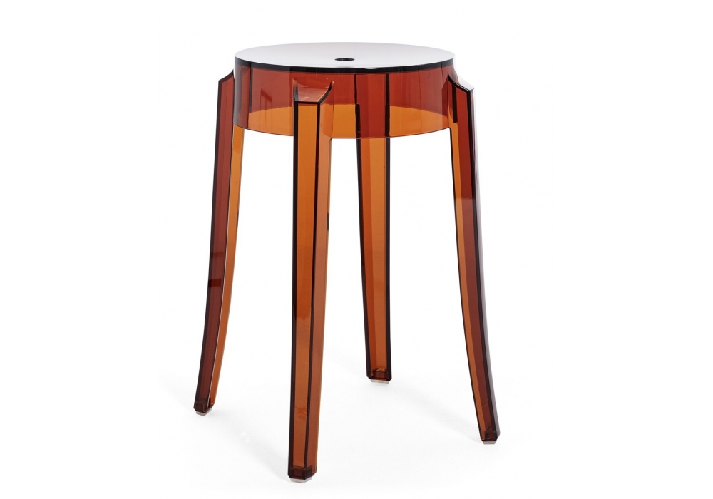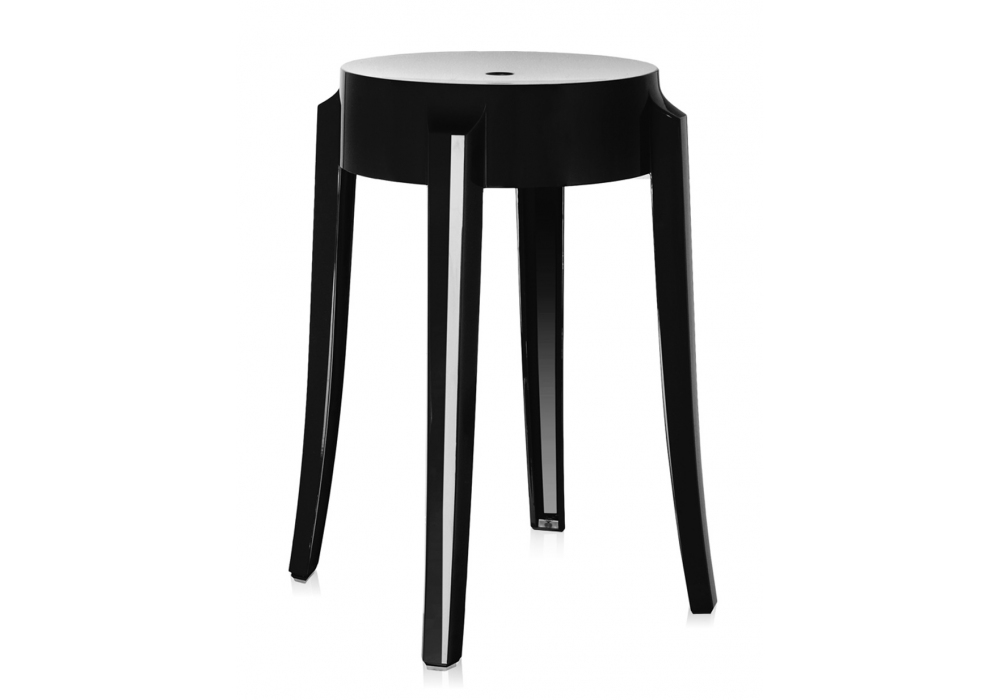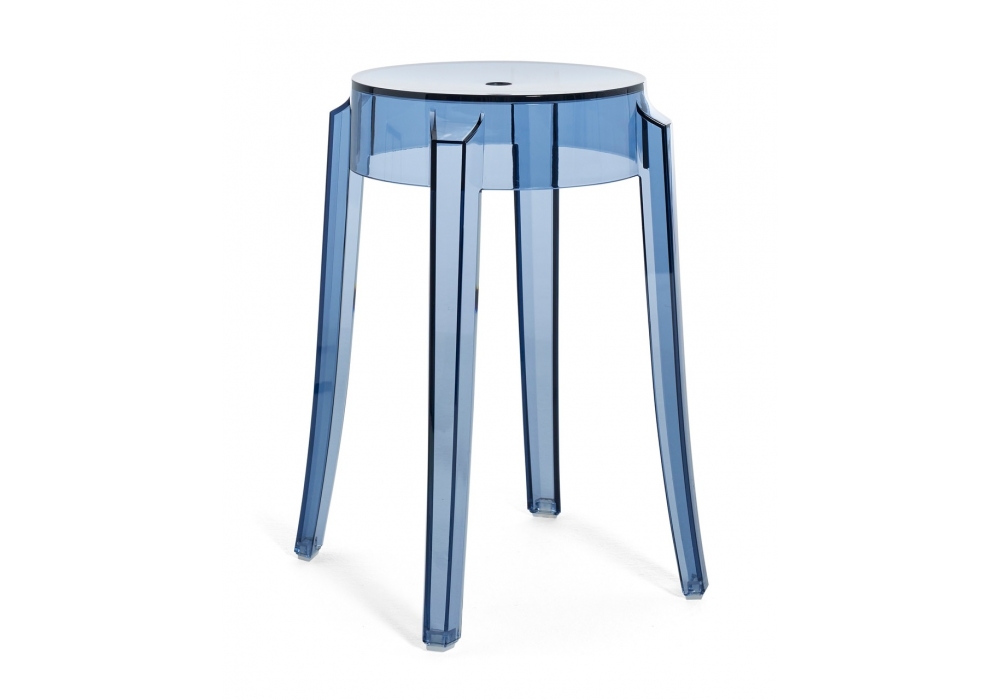 Charles Ghost diseñado por Philippe Starck para Kartell es un taburete en policarbonato 2.0 transparente o teñido en masa a partir de materia prima renovable. Disponible en diferentes acabados.