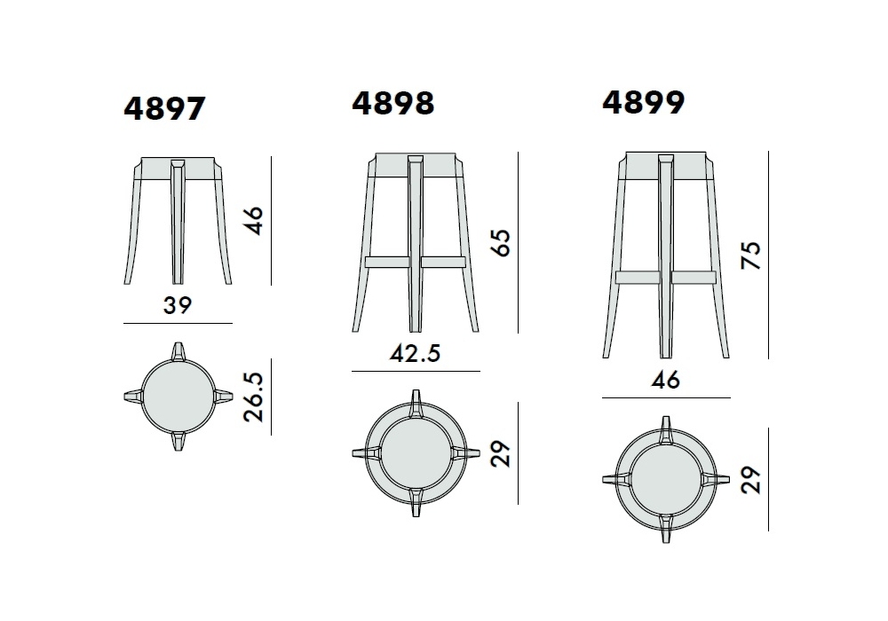 | Dimensiones | 39 x 26.5 x H 46 cm; 42.5 x 29 x H 65 cm; 46 x 29 x H 75 cm; |