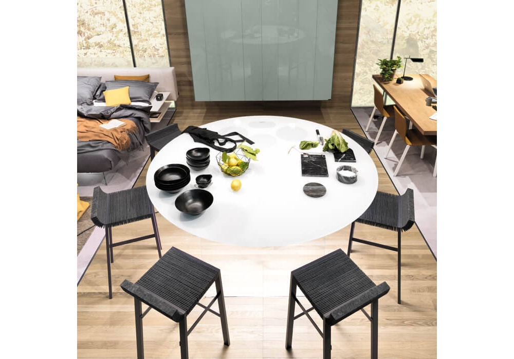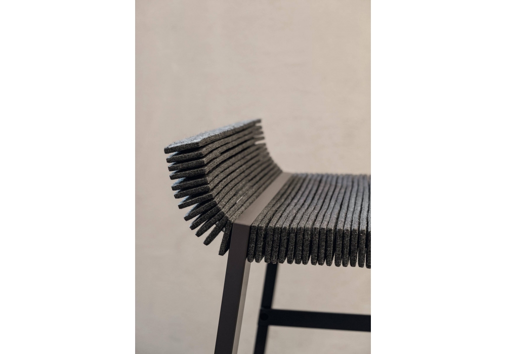 Steps diseñado por Monica Graffeo para Lago es un taburete ecosostenible. El asiento y el respaldo, de hecho, están construidos con tiras de fieltro industrial calzadas en una estructura de aluminio mediante un sistema de ensamblado a bayoneta. El aluminio y el fieltro son materiales completamente reciclables. A pesar de su consistencia, la silla Steps mantiene un aspecto ligero, gracias al rigor y la limpieza formal.