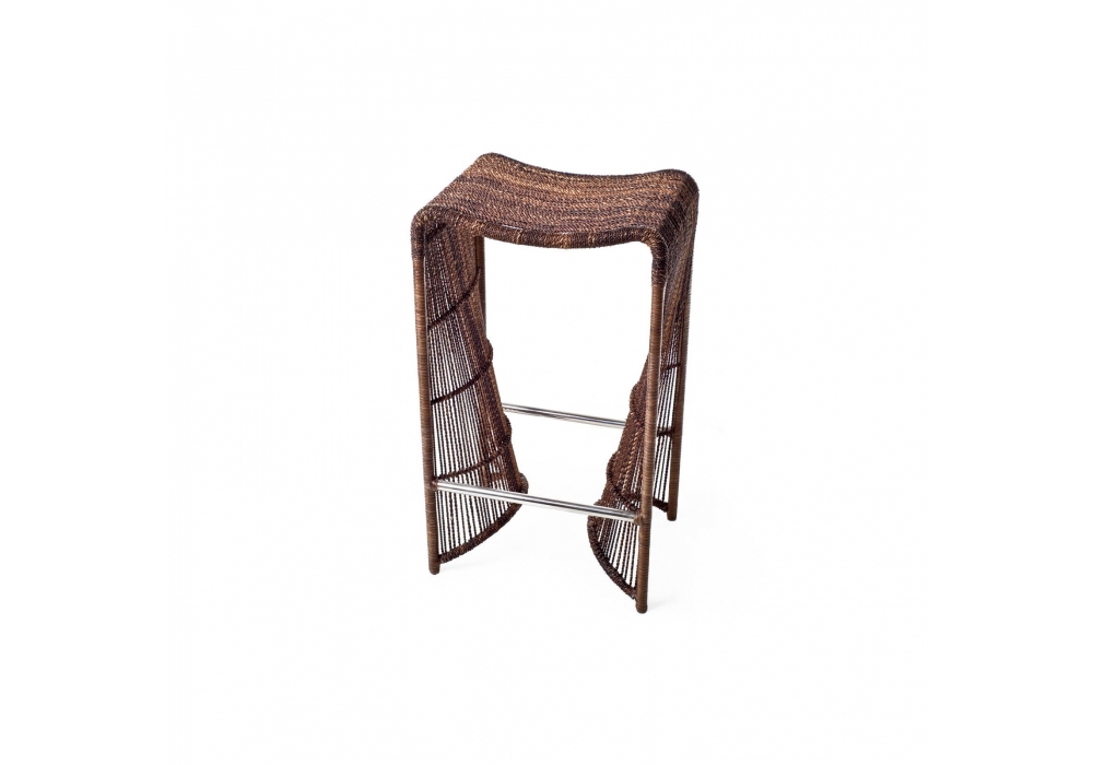 Pigalle diseñado por Kenneth Cobonpue es un taburete realizado con acero y abacá natural para indoor, polietileno para outdoor. Los cordones de la cuerda del abaca se atan individualmente a mano con más de 3000 nudos sobre un marco de acero esculpido a mano. Disponible en dos acabados.