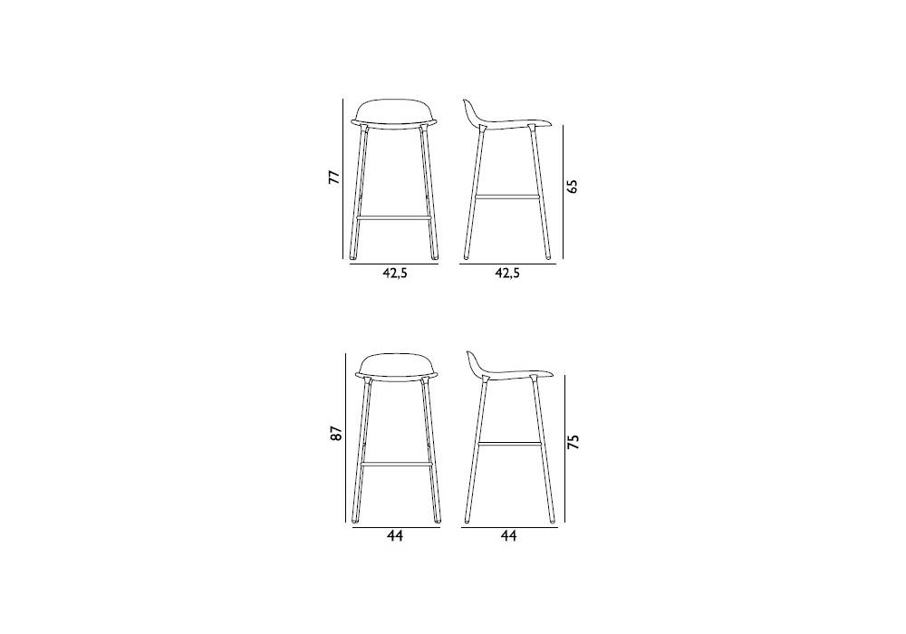 Form, diseñado por Simon Legald para Normann Copenhagen es un taburete, con patas y estructura portante en acero, y con asiento en material plástico. Form está disponible en diferentes acabados y en dos tamaños diferentes.
