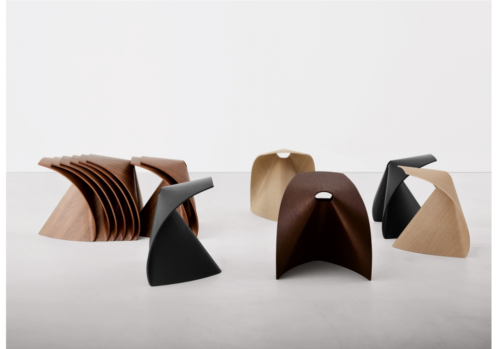 AP diseñao por Shin Azumi para Lapalma es un taburete apilable en madera contrachapada, disponible en roble blanqueado, nogal oscuro, negro poro abierto. El diseño fluido, ergonómico y las formas minimalistas de AP ofrecen un grado inesperado de confort.