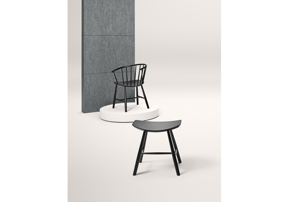 J63 Johansson diseñado por Ejvind A. Johansson para Fredericia es un taburete realizado en madera maciza de fresno negro y asiento en contrachapado.